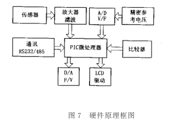 智能信號(hào)處理器的硬件原理如圖7所示,其核心部件為美國(guó)某公司的PIC單片機(jī),其內(nèi)部集成了ROM、RAM、定時(shí)器、數(shù)據(jù)采集器、看門狗電路、上電復(fù)位電路,可節(jié)省大量外圍電路。