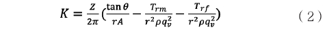 式(2)中:Z一渦輪葉片數(shù);θ一流體流動方向與葉片的夾角;r一葉片的平均半徑;A一流通截面積;ρ一流體密度;Trm一機械摩擦阻力矩;Trf一流體對渦輪的阻力矩。